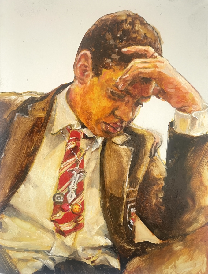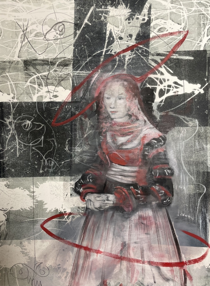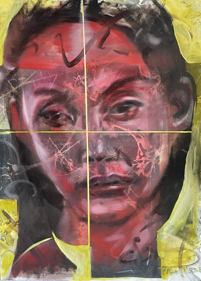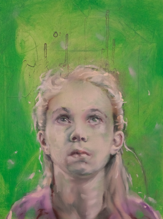 "embracing Art Brut, automatism, doodling, performance and abstract expressionism help me break down learned techniques and habits in traditional portraiture and come to a more authentic personal (self) expression”